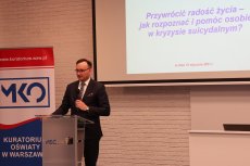 13.01.202113 stycznia odbyła się widekonferencja, poświęcona zapobieganiu samobójstwom i próbom samobójczym wśród dzieci i młodzieży. W spotkaniu uczestniczyli m.in. Mikołaj Pawlak - Rzecznik Praw Dziecka, Aurelia Michałowska - Mazowiecki Kurator Oświaty oraz Dorota Skrzypek - Mazowiecki Wicekurator Oświaty.