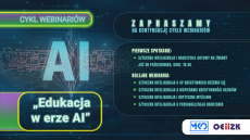 Zaproszenie dla nauczycieli szkół podstawowych i ponadpodstawowych na cykl webinariów pod tytułem „Edukacja w erze AI”.