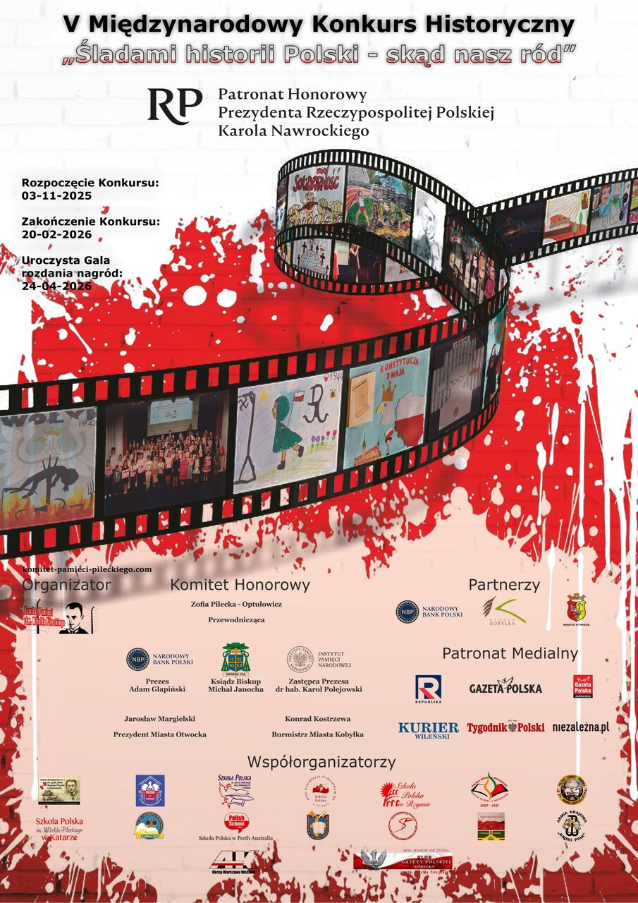Komitet Pamięci Rotmistrza Witolda Pileckiego zaprasza przedszkolaków, uczniów szkół podstawowych, ponadpodstawowych w Polsce i poza granicami naszej Ojczyzny do wzięcia udziału w V Międzynarodowym Konkursie Historycznym „Śladami historii Polski – skąd nasz ród”. Celem konkursu jest popularyzacja wiedzy o dziejach naszej Ojczyzny, kształtowanie postaw patriotycznych oraz budowanie więzi narodowych wśród młodego pokolenia Polaków w kraju i za granicą.