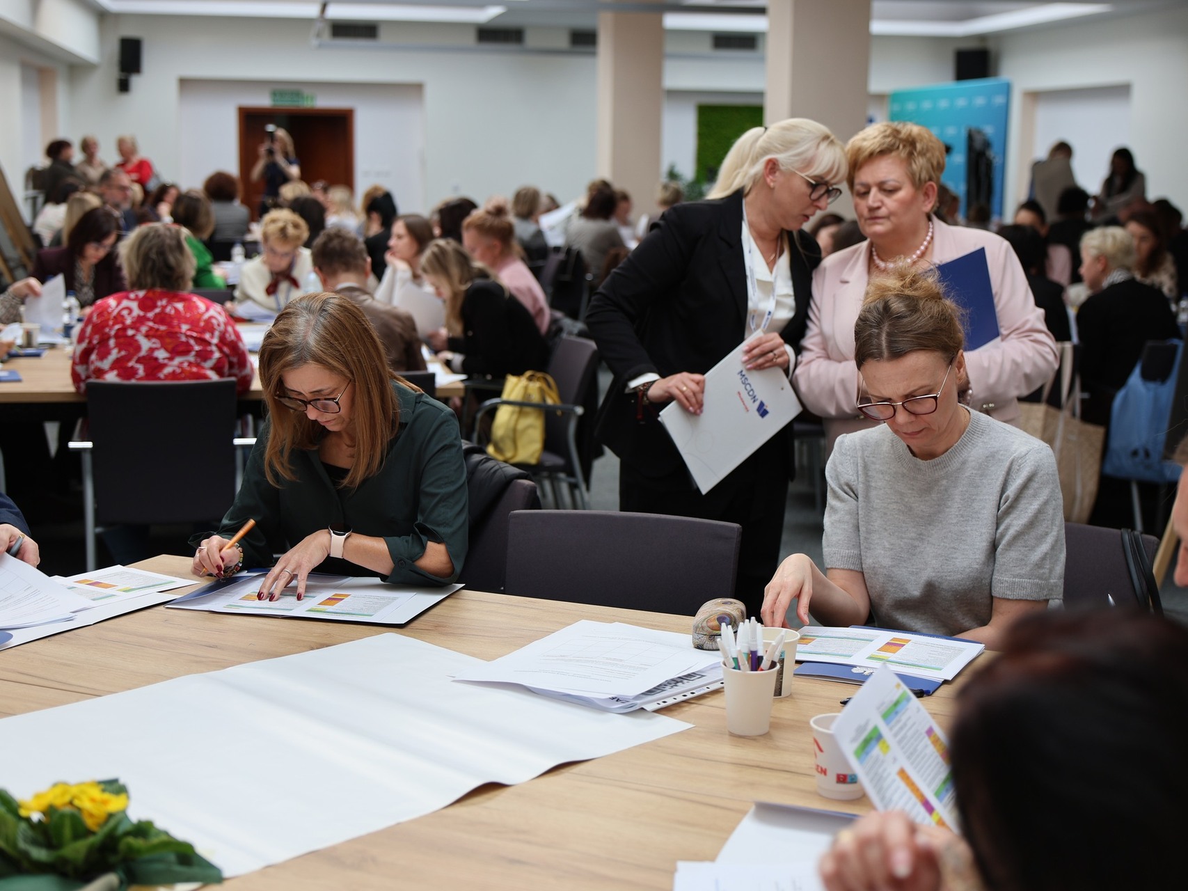 W trakcie spotkania odbyła się debata inspirująca, a nauczyciele i dyrektorzy rozmawiali o proponowanych zmianach, pracując przy "stolikach przedmiotowych".